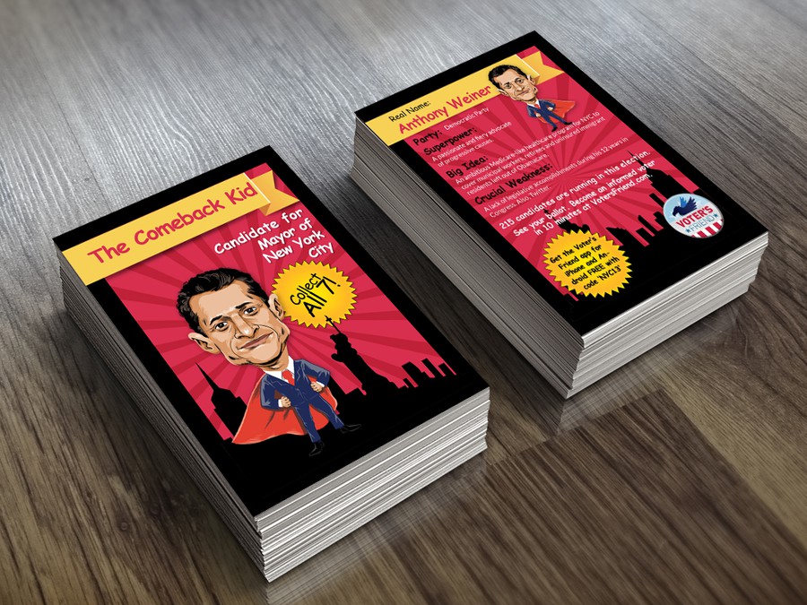 I'll edit your template to make cards for the rest of the candidates running. This interactive allows students to create their own trading card about a real or fictional person, place, object, event, or abstract concept. Please create a trading card template featuring Anthony Weiner, one of the NYC Mayoral candidates running this summer.